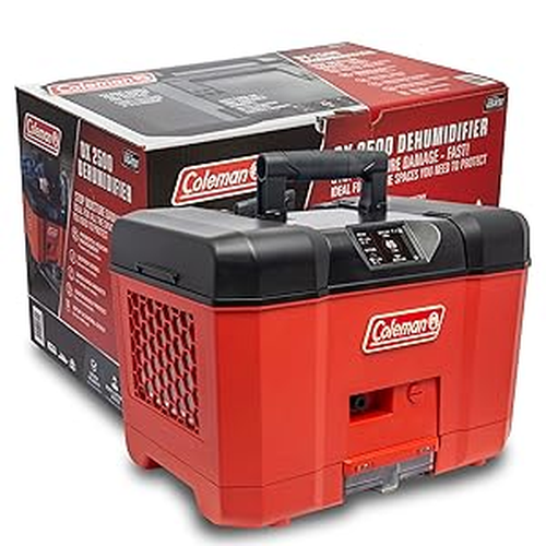 Easy to operate and store, the DX 2500 features simple touchscreen humidity controls plus Bluetooth and Wi-Fi compatibility for convenient monitoring and control from your phone using the free Coleman Dehumidifier app.