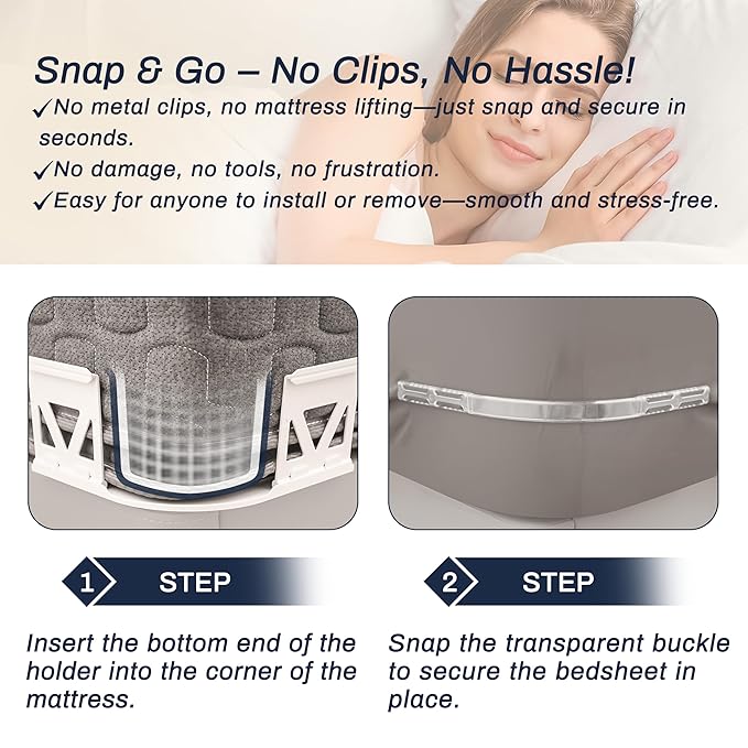 Anchor Your Sheets & Elevate Your Sleep.  No more waking up to bunched-up corners and wrinkled bedding. Keep your fitted sheet tight, smooth, and secure night after night.